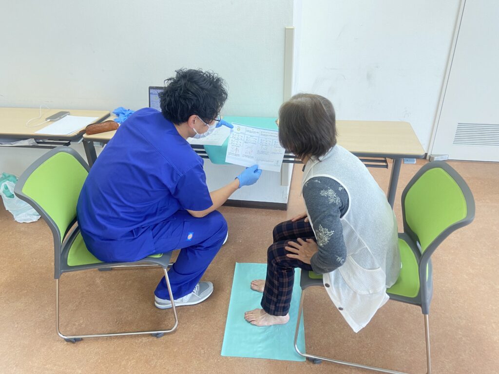 足健診では、足の骨格チェックを行い、参加者一人ひとりの足の状態に合わせたアドバイスや靴選びのポイント、自宅でできる足の体操などを指導いたしました。